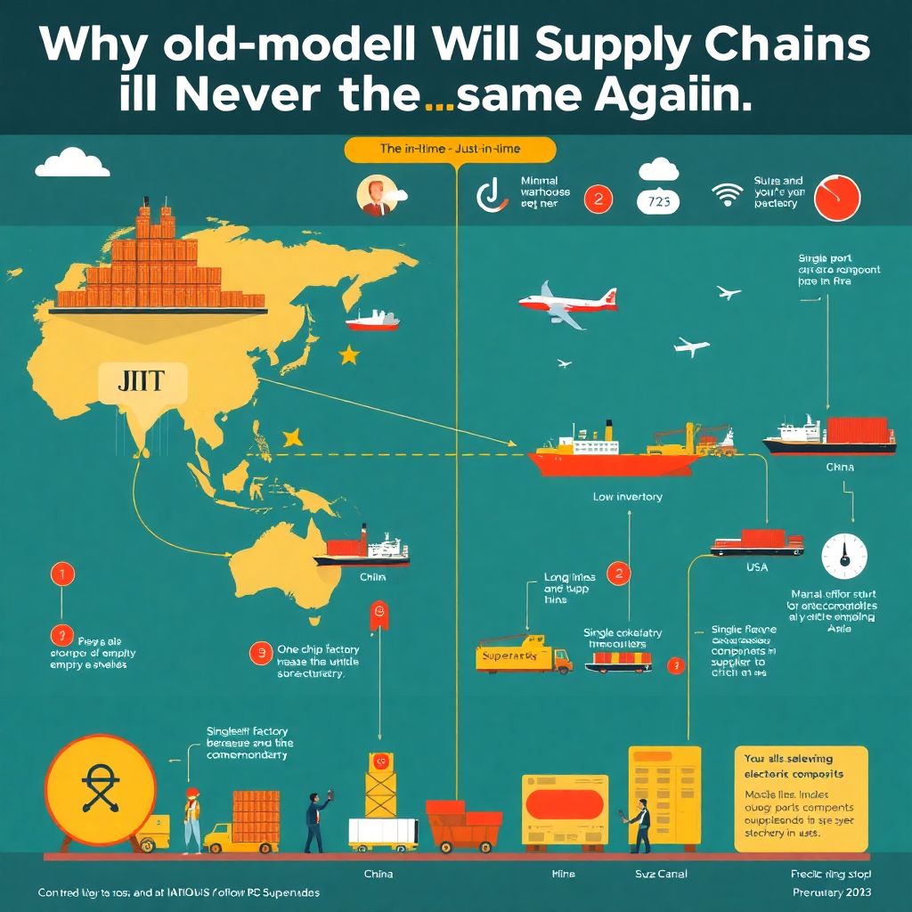 До недавнего времени доминировала модель just-in-time: минимальные запасы, быстрые поставки, опора на дешёвое производство в других странах. Любой сбой — и конвейер останавливается, но вероятность массовых сбоев казалась низкой.